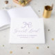 Add a soft and whimsical touch to your wedding with this lavender guest book, featuring a hand-drawn bow and “Guest Book” displayed in elegant script lettering. The delicate lavender hue adds charm and serenity—perfect for spring weddings, garden ceremonies, or romantic purple-themed celebrations. Personalize the cover with your names and wedding date, and customize the spine with your message for a meaningful keepsake you'll cherish for years.