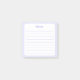 Ta med dig en liten elegans till dina anteckningar med den här mjuka lavender-infogade klibbiga anteckningsblocket. Perfekt för att du kan slå ihop snabba påminnelser, att göra-listor och kreativ på hemmaplan, skolan eller kontoret. Vågrät linjer hjälper dig att behålla skrivningen på ett ordnat sätt, medan den lugnande pastelllavendeln gräns lägger till en sofistikerad beröring på arbetsytan. Den här praktiska anteckningsblocket är perfekt för att hålla sig på spåret med ett klick av färg.