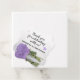 Dessa vackra favoritmärken är ett fantastiskt sätt att tacka ledamöterna i brudens sida, speciella gäster eller familjemedlemmar. Elegantens utformning är ett vackert foto av en enda lång lavender lila ro som reflekterar i bassäng i vatten. Skriptet i finare lyder "Tack för att du firar med oss!" med utrymme för namn/namnteckning nedan.