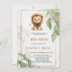 ELEGANT LEJON BABYSHOWER INVITATION Toppen Cute Lejon Baby Shower-inbjudan - Han är kung i djungeln och snart kung om dig hem och dina hjärtan! Lite Kung är på väg. Starta firande på högerna med vår söta inbjudan. Med ett hårt litet baby lejona kung omgivet av tropiska löv från den nya grönten