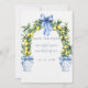 Markera dina kalendrar för ett bröllop att minnas! Den här eleganten Save the Date har vackra accents med levande citroner som skapar en vacker båge som framkallar romantik i en trädgård som kysstes av sol. Elegant i exquisite blue ornate vas på vardera sidan tillför en del sofistikering och europeisk charm. Med en förfinad typografi som förbättrar designen anger det här kortet tonen för ett firande fyllt med kärlek, elegans och skönhet vid tidpunkter.