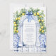 Inbjudan dina gäster till firande i kärlek och tidlös skönhet med den här fantastiska bröllopsinbjudan. Den här utformningen frammanar romantik i en trädgård som kysstes av sol. Eleganten är ram på scenen, medan det blåa vas på vardera sidan tillför en aning sofistikering och europeisk charm. Den formella typografin förstärker den förfinade estetiken och skapar en inbjudan som exuderar nåd och elegans. Perfekt för ett klassiskt och romantiskt bröllop, det här är tonen för en oförglömlig dag full med kärlek och glädje.