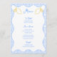 Upplev ditt bröllop med den här Medelhavsininspirerade menymallen. Med chicens citronillustrationer och ett delikat, mönstrat gräns ger anpassadet en uppfriskande nyck av sofistikering till din speciella dag. Perfekt för Medelhavstäckande bröllop, semesterfirare, party eller strandmat firande, är denna menymall både praktisk och praktisk för stil. Skriptet elegant och kant med liten skalopning ser till att det blandas sömlöst i valfri bröllop-dekoration medan anpassadet tillåter personlig fläck. Vare sig du är värd för en formell middag eller en avslappnad brunch, lägger den här menyn till att dina gäster kommer att hålla sig varma.