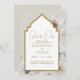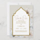 Den vackra beige blommigten sparar datumet med guld-skript och en vattenfärgad magnolia-blomma. Hitta matchande objekt i min butik.
