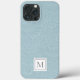 Elegant blommigt av ljusblå vintage botaniskt mönster med grått monogram på vit bakgrund.