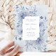 Dessa vackra, ljusblå och dammiga bröllopsinbjudningar har en vintage blå vattenfärgsblått blommigt ram med vackra botaniska löv och blommor, och kalligrafi av snyggt tillsammans med klassisk text. En subtil blå vattenfärg stänk dekorerar den ljusblå bakgrunden. Fransken ser blå ut som ett verktyg för att skapa en romantisk och elegant vid ditt bröllop-kontor.