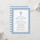 Baptisminbjudan till elegant Light Blue och Silver med Kor. Stripe bakåt.