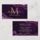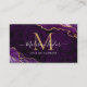 Modern Elegant Chic Lila Violet Guld Glitter Marble Agate Monogram Affärskort