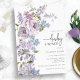 Inbjudan till elegant Lila Baby Shower. Lås upp charmen av rustik elegans med våra häpnadsväckande inbjudningar till babyduschen. Handmålad i lila- och blåsskuggor som återspeglar den unika ambitionen hos din rustiska, utomhusliga eller klassiska babydusch.