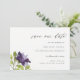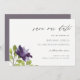 Elegant Lila Blå Blommigt Vattenfärg Ro Blommor i Spara Datumet