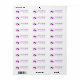 Dessa returadressetiketter har en ren och elegant design med vit bakgrund, vilket ger en luftig känsla. Layouten inkluderar två illustrerade lila blommor med subtila gula centra på vänster sida, sammanbundna med gröna stjälkar, medan höger sida visar anpassningsbar text i en fet serif-typsnitt. Färgpaletten med lila, grönt och grått tillför en touch av sofistikation, vilket gör dessa etiketter perfekta för formella tillfällen. Den realistiska men stiliserade representationen frammanar elegans och lugn, perfekt för att personliggöra din post med en klassisk och romantisk estetik.