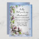 Vacker lila blommig med en fjäril och blå bakgrund. Planerar du ett bröllop? Du behöver dina vänner för att hålla din hand, hjälpa dig organisera och få dig att se perfekt ut på din speciella dag. Att fråga om de vill vara brudtärna är enkelt med detta kommer du att vara min brudtärna-kort. Anpassa kortet genom att ändra texten i de fält som tillhandahålls fram- och baksida. Du kan ändra teckensnittsstil, storlek och färg, samt papperssort och stil.