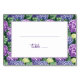 Det här eleganta platskortet för bröllop har en frodig blomsterkant med hortensiablommor i nyanser av lila, blå och grön, som skapar en livlig ram runt den centrala vita ytan. Designen är perfekt för att tillföra en touch av naturlig skönhet till ditt evenemang, med anpassningsbara textfält som låter dig anpassa varje kort utan ansträngning. Den mjuka, flytande skrivstilen tillför sofistikation, medan den realistiska men stiliserade representationsstilen förstärker dess visuella tilltal. Idealiskt för formella tillställningar utstrålar detta kort lugn och firande, vilket gör det till ett charmerande tillskott till alla bröllop eller speciella tillfällen.