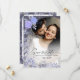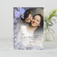 En dröm Spara datumkortet designat med mjuk lavender- och lila-blommigt-accenter som ramar ditt favoritfoto. Elegantens kalligrafi lägger till en romantisk charm, medan övertäckningen av den genomskinliga blommigten ger djup och sofistikering. Perfekt för elegant, royal eller vår bröllop, den här anpassadet gör att du inte kan meddela dig vid rätt tidpunkt och på ett bra sätt.