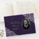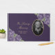 Anpassa enkelt denna vackra blommigt för lila i att älska minne/begravningsgäst bok med ett foto som är försett med lila ro och baby utandningsblommor på lilans bakgrund.