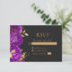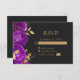 I eleganten finns det ett modernt bröllop OSA-kort i lila blommor med guld-faux-folieblad på ena kant. Anpassadet guld-färgad visas på en mörk som är mörk. Den omvända sidan är solid off-black.