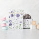 Blanda blommor i lila och grönt på vit mark från Jenn Steffen för Studio Posies. Ett annat vackert blommönster tryckt på en mängd olika produkter.