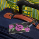 Utformning av söt lila och svart blomma på och tillbehör till personliger.