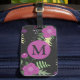 Elegant Lila blommor Art på Black Monogram Bagagebricka