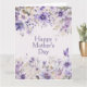 Elegant lila blomsterlig födelsedagspresentkort för mamman med eleganta lila och lavendelblommor med grönska och fjärilar på en mjuk pastelljus färgpalett. Anpassa texten för alla tillfällen med ett sentimentalt meddelande eller personligt meddelande och lägg till ett foto som kan användas för att skapa en vacker present som kan behållas. Låt mamman bada i de vackra akvarellblommorna och visa hur mycket du älskar henne. Perfekt för mamma, mormor, syster, faster eller bonusmamma.