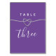 Hjälp gästerna att hitta sina platser med stil med detta eleganta lila bordnummerkort för bröllop. Med en chic violett bakgrund, romantisk silverrep hjärta och sofistikerad kalligrafiskrift, kompletterar denna minimalistiska design perfekt en modern och tidlös bröllopsmottagning.