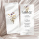 En boho bröllop-meny med lila och gult och grönt grenar vildblommor bouquet-trädgårdsbröllopsmeny. Med vattenfärgad gult och lätt lila, bohemiska gröna blommor och grenar. På vit elegant med fet menyformulering. Ta det tillsammans med andra saker från vår bröllop-samling och få allt att stämma överens.