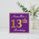 Elegant, Lila, Faux Guld 13:e födelsedagen + Namn Inbjudningar