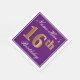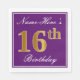 Den här enkla och elegant pappra napkin-designen innehåller ett meddelande som "Namn-här's 16:e födelsedag" (med "16:e" som har en ytliknande guld) inom ett fyrkantigt område av lila färgad med en enkel gräns-kontur. Namn är i en text som liknar en text med en vit färgad och kan vara personlig. Napkins som dessa kan kanske användas i en födelsedagsfest till någon som firar sin sextonde födelsedag. [~Z0000140]