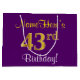 Den här enkla presentsäcksdesignen i eleganten innehåller ett personlig som "Namehär's 43 Birthday!" (med "43:e" som har ett utseende som påminner om guld och utseende) på lilans färgad. Namn är i skriptliknande gult-färgad och kan anpassas. En sådan här presentpåse på personligens födelsedag skulle kanske kunna användas när en present eller gåva till någon som firar sin fyrtiotredje födelsedag är ge. [~Z0000255]