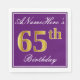 Den här enkla och elegant pappra napkin-designen innehåller ett meddelande som "ANamehär's 65e Birthday" (med "65en" som har en ytliknande guld) i ett fyrkantigt område av lila färgad med en enkel kontur av gräns. Namn är i en text som liknar en skript med vit färgad och kan anpassas. Napor som dessa kan kanske användas i en födelsedagsfest till någon som firar sin sextiofemårsdag. [~Z0000140]