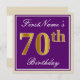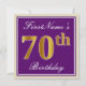 Den här enkla inbjudan och inbjudan från elegant födelsedagsfest innehåller ett personlig som "FirstName's 70 Birthday" (med "70:e" som har ett utseende som liknar guld i utseende) i ett fyrkantigt område av lila färgad med en enkel kontur av gräns. Namn är i en elegant som är skript som liknar den vita färgaden och kan anpassas. Information om inbjudan till anpassadet om baksidan har funktioner. Ett födelsedagsfest inbjudan som detta skulle kanske kunna användas när man bjuder in människor till en födelsedagsfest som hålls för någon som firar sin 70-årsdag. [~Z0000226]