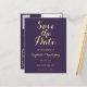 Elegant Lila Faux Guld Bröllop spara datum Vykort