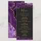 Den här eleganten har den moderna bröllop-menyn överst och grund gräns av lila vattenfärgad agat som trimmas med guld faux glitter. Texten visas i elegant guld-färgad handskrift, kursiv och mönsterruta typsnitt på en skiffersvart bakgrund. Den agate-designen upprepas på motsatt sida.