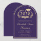 Formell bågformad lila universitets examensannonsering med "Class of" i en guldfärgad illustration av en lagerkrans, en guldfärgad examenshatt och diplom, och examenstagarens namn i ett elegant guldfärgat skrivstil. Lägg till deras skola, huvudämne, hedersbetygelser eller framtida planer i klassisk guldfärgad serif-typografi.
