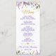 Elegant Lila Guld Watercolor Blommigt Bröllop Meny