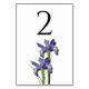 Den här blommigten för elegant har lila-höjningar. De vackra lilorna är placerade under bordsnumret. Det här är den perfekt elegant blommigt bröllop som är perfekt för alla bröllop-teman. Utformning av elegant iris-blomman bröllop-bordsnummer med modernt inslag. Det finns också möjlighet att matcha bröllopsinbjudningar och andra artiklar i kontorsartiklar.
