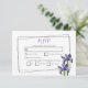 Den här blommigten för elegant har lila-höjningar. De vackra lilorna med sina gröntar placeras ovanpå en geometrisk tunn linje gräns. Titeln är färg som motsvarar lilan av iris-blomman. En större bild av eleganten iris-blommor används på baksidan. Det här är den perfekt elegant blommigt bröllop OSA acceptkort som passar alla bröllop-teman. Utformning av svarskort för elegant iris-blomman bröllop med modernt inslag. Det finns också möjlighet att matcha bröllopsinbjudningar och andra artiklar i kontorsartiklar.