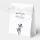 Den här blommigten för elegant har lila-höjningar. De vackra lilorna med sina gröntar hamnar under bröllop. Brödens och brudgummens namn är färg matchade mot lilan av iris-blomman. Det här är den perfekt elegant blommigt bröllop som är perfekt för alla bröllop-teman. Elegant iris-blommans favoritbox med modernt inslag. Det finns också möjlighet att matcha bröllopsinbjudningar och andra artiklar i kontorsartiklar.