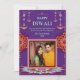 Skicka varmt önskemål och entusiastisk glädje med det här pulserande anpassningsbarna Diwali helgdag card! Det här kortet är en perfekt för att fira festivalen i Ljus. Det har en rik lila bakgrund med traditionell hängdiyas, intrikata mandala-design och ett vackert avståndsinspirerat gräns. Med det centrala fotot som du har i ram kan du anpassa med ditt familjefoto, medan den redigerbara texten gör det enkelt att inkludera din familj namn och ditt år. Ett glatt, färgstarkt och hjärtligt sätt att koppla upp sig med nära och kära under detta speciella år!