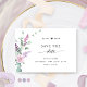Meddela din speciella dag med den här eleganten och romantisk Spara datumkortet, som ingår i vår exklusiv "Glatt Blommigt"-samling. Med delikata blommigtar med vattenfärg i mjuka mun, dammig lila, lera och laveringshus. Denna utformning är en perfekt för par som vill ha ett minimalistiskt men förfinat tryck. Enkelheten i blommigtarna ger charm och nåd, skapar det här kortet ett tidlöst biet. Den omvända sidan har en snyggt logotyp-stil Spara datuminformationen med utrymme för webbplatsen bröllop eller ytterligare information. Fullborda din planering i bröllop med att samordna inbjudningar, RSVP och mycket mer från denna vackra samling. Den här designen matchar alla våra "Glatta" samlingsinbjudningar. Besök samlingen efter kategori på den här produktsidan eller bläddra igenom hela samlingen med en enda blick på: https://www.zazzle.com/collections/joyful_pastel_floral_collection-119953493901910528