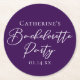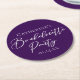 Denna eleganta kungliga lila möhippa-coaster har anpassad vit typografi för en brud som ska ha en kvällsfest med sina brudtärnor. Chic, minimalistisk möhippa-dekoration.