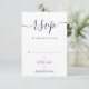 Detta eleganta lila och vita RSVP-kort kan anpassas med chic typsnitt. Du kan lägga till ytterligare information, till exempel menyval, på baksidan. Perfekt för bröllop, brudfester, baby shower, dop, förlovningsfester, årsdagsfiranden, examina, födelsedagar och andra speciella händelser under året! Designad av Thisisnotme©