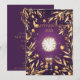 Elegant lila nyårsafton med guldgrönt lövverk inbjudningar