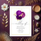 Inbjudan dina gäster i stil med den här sofistikerade bröllopsinbjudan med pulserande blommigtar för lila, delikata guld-accenter och modern elegant-typografi. Den romantiska skriptdesignen på motsatt sida lägger till en extra-charm, skapar den perfekt för ett lyxfritt och tidlöst firande.