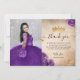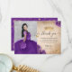 Elegant lila och guld Quinceañera fotobild födelse Tack Kort