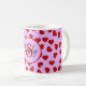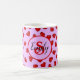 Elegant lila och mönster i rött hjärta i monogramm kaffemugg