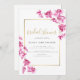 Grenar av lila orkidéer, handmålad i vattenfärg, intertwin över ett klassiskt, traditionellt guld ram i denna enkla men sofistikerade elegant ännu i chic inbjudningskort för möhippan. Guld i färg i kalligrafin, liksom det diskreta guld ram (detta är en digital effekt), är ge en festlig men dämpad stänk i färg.