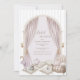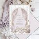 En vacker flytande gardin som omger typsnitt med dina evenemangsuppgifter. Mjuka akvarellkuddar med vacker vintage stol och söt tekanna, koppar. En underbar design för alla säsonger bröllopsdusch. Vackra koordinerande bruna typsnitt. Absolut förtjusande.