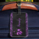 Lägg till elegans och stil till resan med en personlig bagagetapp. Anpassa med ditt namn, initialer, meddelande, citat eller vad du vill. Snygg lila ro med matchande lila gräns och anpassning för enkel identifiering.