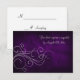 Det här är en snyggt, en rik tittar ett bröllop OSA-kort med en söt silver-snurra och text på en elegant royal lila-övertoningsbakgrund. Svarskortets baksida är vit för att din svarsperson lätt ska kunna markera det. Hela texten är anpassade. Det här kortet matchar "Elegant Lila Monogram Wedding Invations" i min butik.